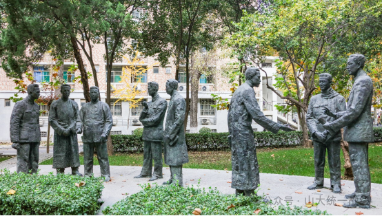 此外,山东大学中心校区为学校杰出人物树立11 尊纪念塑像, 其中7 位为九三学社社员,涵盖文学领域的冯沅君、陆侃如、蒋维崧,以及历史领域的童书业、张维华、郑鹤声、陈同燮。这些塑像不仅寄托着后学的追思,也进一步丰富了传统教育基地的内容。